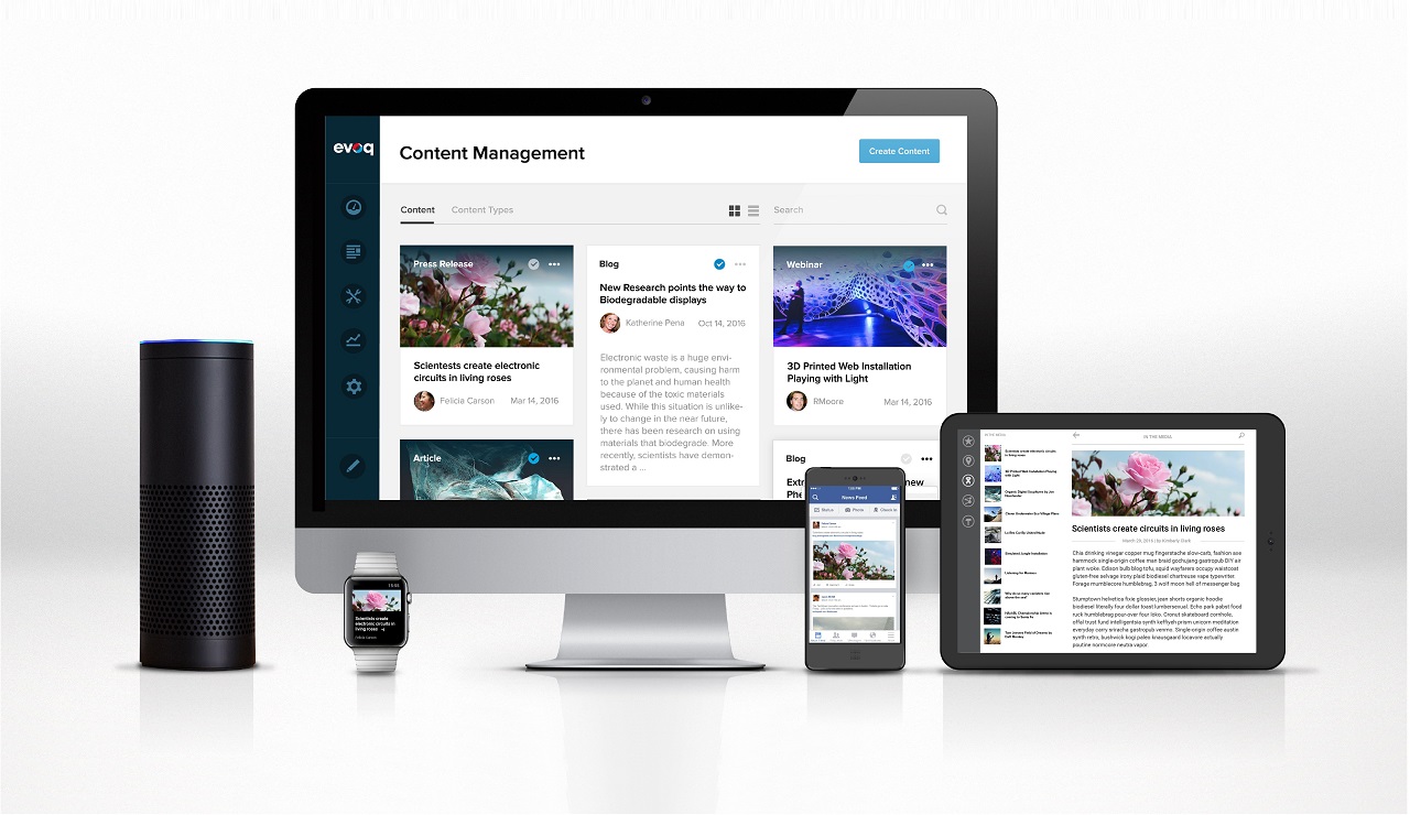 SAN MATEO, Calif., April 26, 2017 – Today, DNN Software announces an assortment of new channels in Liquid Content™, the omnichannel publishing system central to its Evoq CMS. With the general availability of Evoq 9.1, Liquid Content can seamlessly publish to devices such as Amazon Echo, and applications such as Facebook Messenger, Facebook, Twitter and LinkedIn.
